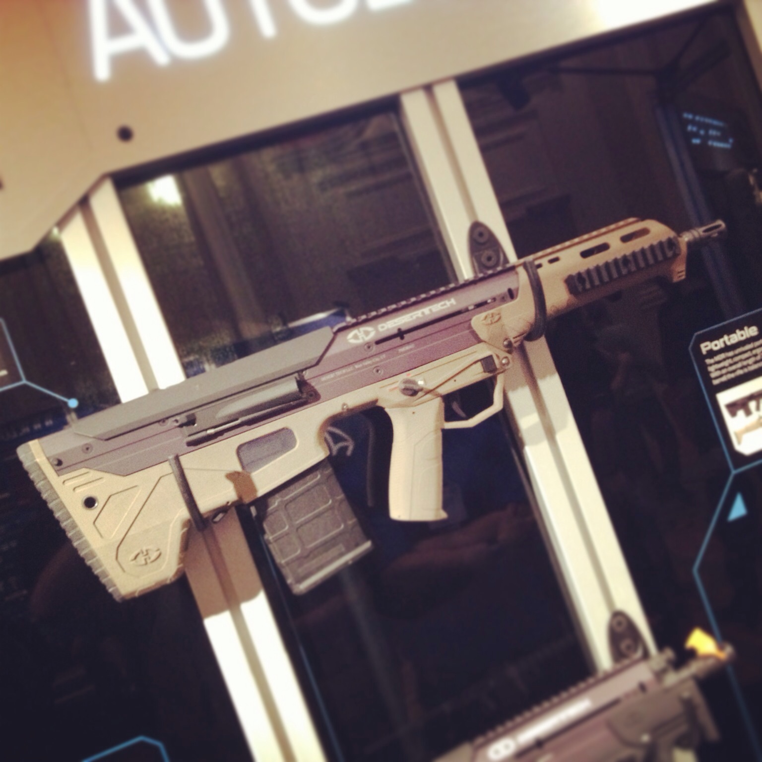 Desert Tech unveiled a couple of new products this year. The most excitement surrounded the MDR or Micro Dynamic Rifle. This semi-auto bull pup is a departure from Desert Tech’s previous bolt action designs. The models on display were rapid prototypes, but they design was very interesting. The controls are familiar to anyone used to the AR system. The bullpup ergonomics make swinging a full 16″ rifle as easy as a 10.5″ AR15. The MDR features a quick change barrel system that covers a range of calibers in the “short action” envelope. Planned calibers will be 5.56 and 7.62 NATO, .300 Blk and 7.62x39mm. Desert Tech expects to start producing the rifle in 2015. While the models on display were more along the lines of CQB rifles, precision versions are a possibility and in keeping with Desert Tech’s core product line, the SRS.
