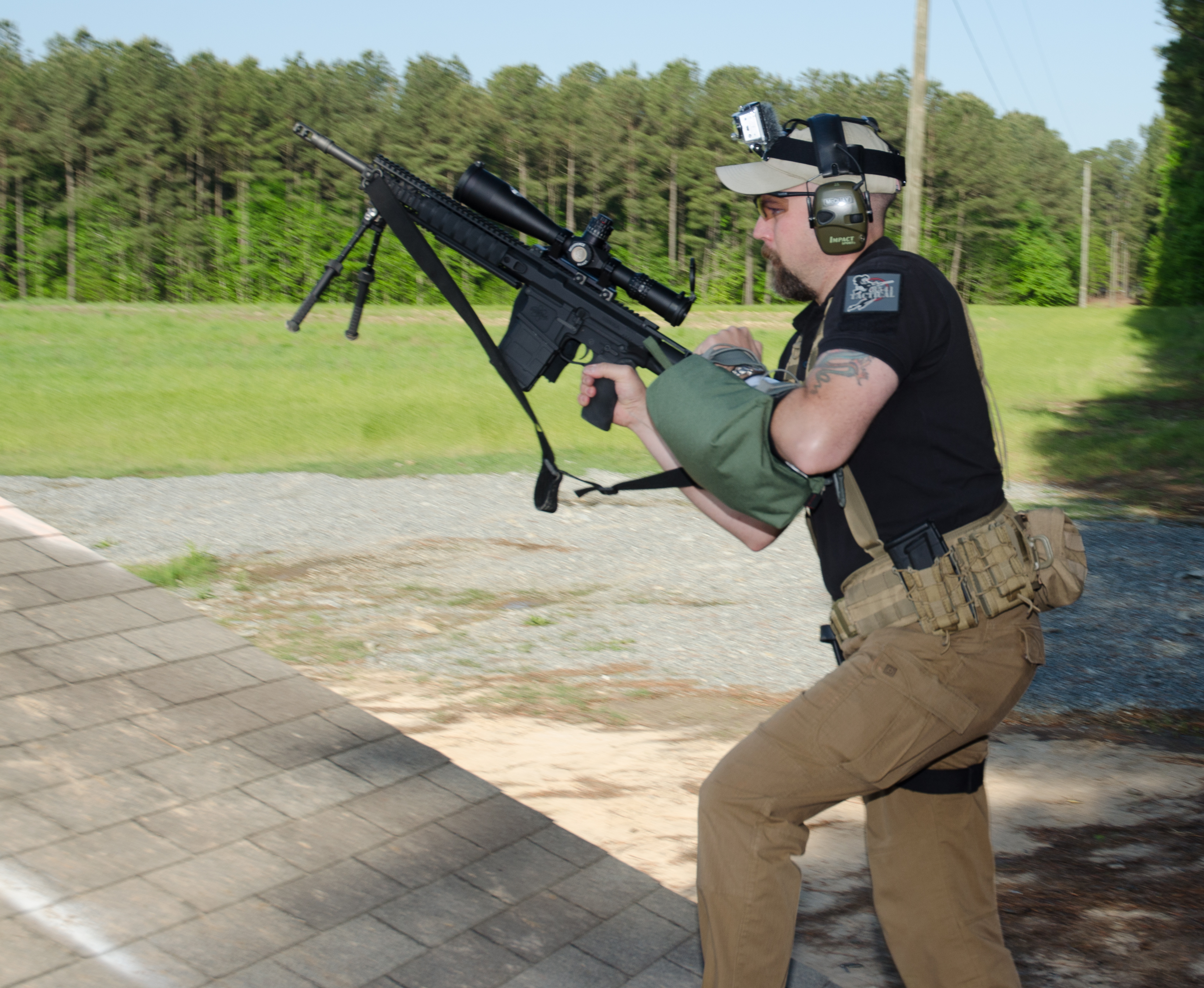 This stage was fairly straight forward. In fact it was the easiest out of all of them because it required almost no movement and the shooter switchover only required me dropping my magazine and locking my bolt back before Nick could chamber a round and gas-on. Due to the shape of the top of the ‘dozer blade, I used my rear bag to support the rifle’s forend. It allowed me to pin the rifle against the blade and get some added stability. Nick used his WieBad pillow to great effect.