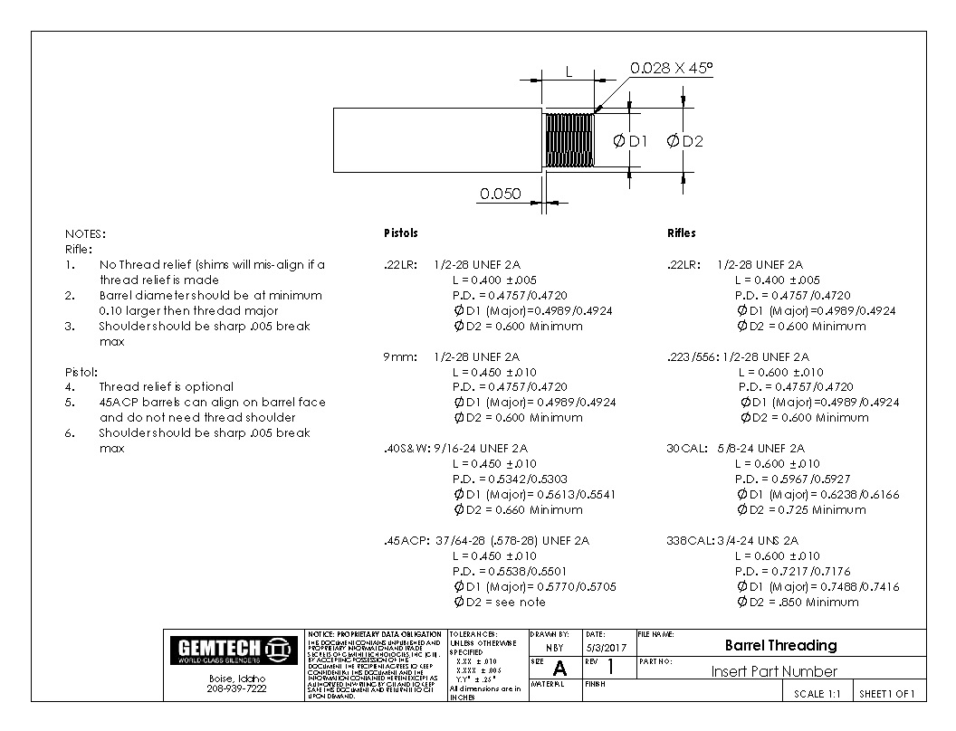 Once our testing was concluded it was clear that the Gemtech Tracker performed much better on the custom rifles. All three rifles had the same barrel profile, but the custom rifles had their muzzles threaded concentric to the bore with precision by a skilled rifle smith. When we looked closer, we found that the custom rifles had thread relief cuts. The factory Remington had a shoulder. The shoulder was slightly greater than the 0.050″ that Gemtech specifies.
