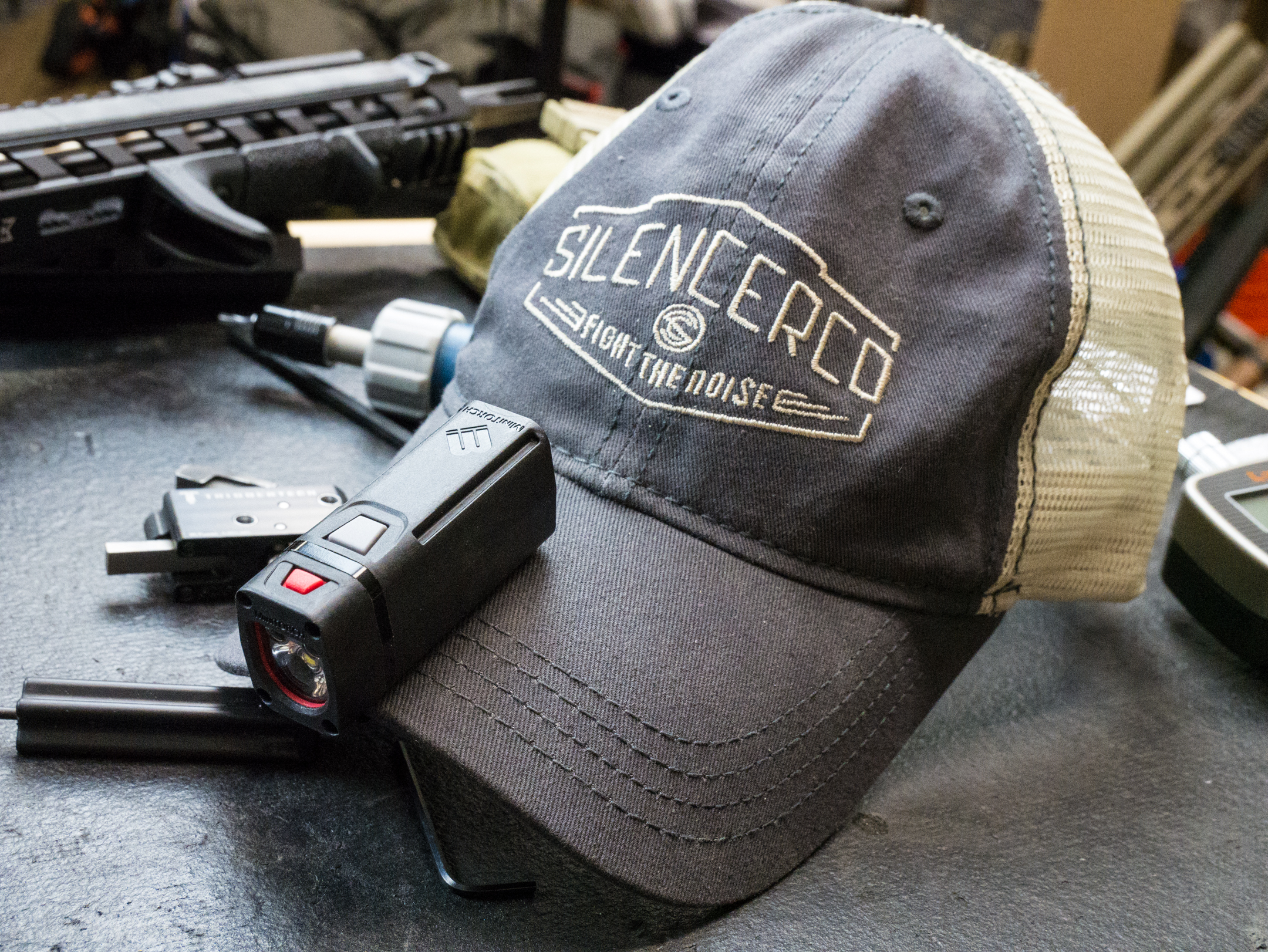 The bottom of the MiniLIGHT contains a high powered magnet that will attach to the included Picatinny rail adapter, hat clip or any number of metal items that happen to be close by. The MiniLIGHT rail adapter easily slides on rails without tools and allows you to attach the MiniLIGHT to the forend of your rifle. While the MiniLIGHT is not designed to be a weapon light, it could be used that way in an emergency. The true value of the adapter is to be able to allow you to keep both hands on your rifle while navigating in low light.