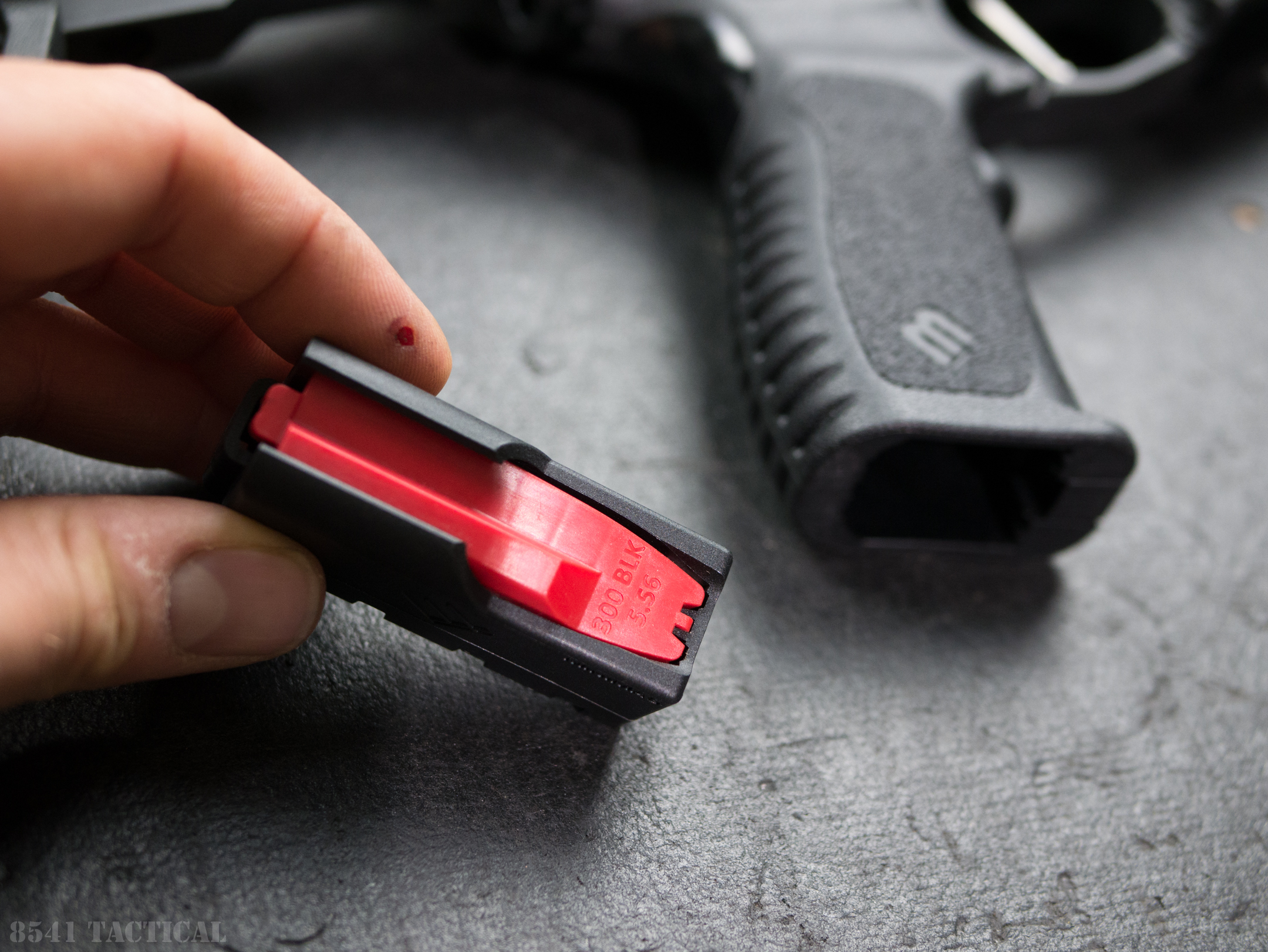 The MiniMAG is a fully functioning AR15 magazine that is designed to hold three 5.56 NATO or .300 BLK catridges. It is designed to be drop-free in mil-spec receivers and will engage the bolt stop when empty. The MiniMAG seats securely inside the M-Series Grip and ejects into the hand when the release on the toe of the grip is pressed.