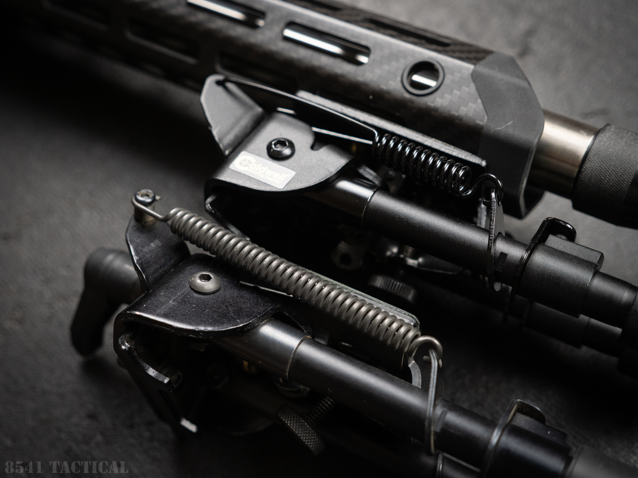 When I took the Caldwell out of its plastic bubble pack, I immediately noticed that it felt lighter and cheaper. The impression of less weight was substantiated when I put it on the scale. Harris BRM-S 6-9″ weighs in at 13.9 oz. The Caldwell XLA is 11.2 oz. While our Harris currently wears a KMW Pod-loc, I believe the main source of the weight difference is the material thickness in some of the components.
